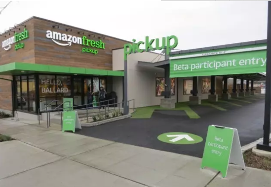 在“學(xué)習(xí)傳統(tǒng)零售”這方面,亞馬遜在今年3月份內(nèi)測了自己的“生鮮提貨點(diǎn)(Amazon Fresh Pickup)”,整體邏輯類似于傳統(tǒng)店的“開車自提”。