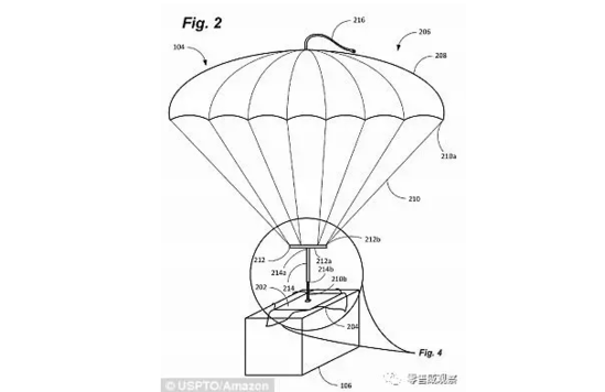 這個方案的核心是給商品裝上“降落傘”,這樣無人機(jī)不用落地,就可以實(shí)現(xiàn)商品配送,在一定程度上很好地節(jié)省了燃料成本。